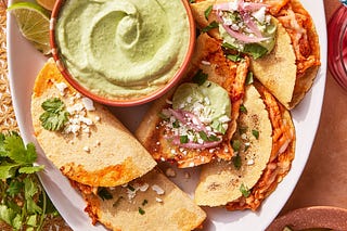 Baked Chicken Tinga Tacos With Tangy Avocado Cilantro Crema