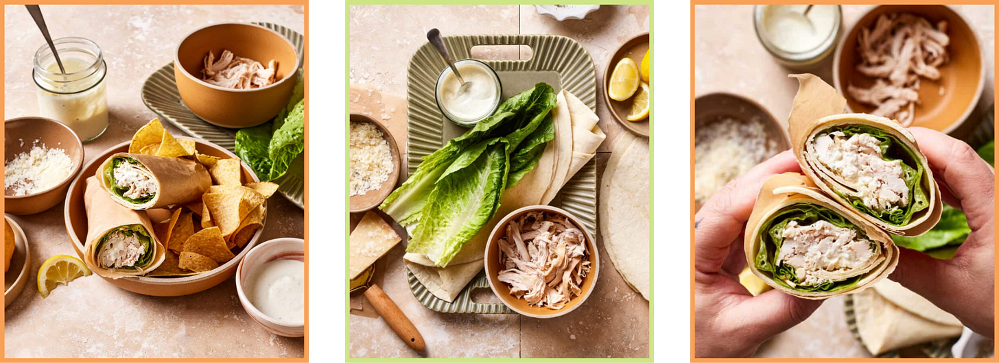 When it comes to a healthy lunch that is hearty and satisfying enough to help power you through the afternoon slumps, there’s nothing better than a Caesar salad wrap. It’s everything that you know and love about a traditional Caesar salad, but wrapped in a tortilla to fuel you with extra carbs to keep you full for longer. And my Healthy Chicken Caesar Wraps take this to the next level. These wraps are filled with tender chicken, crunchy lettuce, and a creamy homemade caesar dressing that is so delicious, you’ll want to eat it with a spoon!