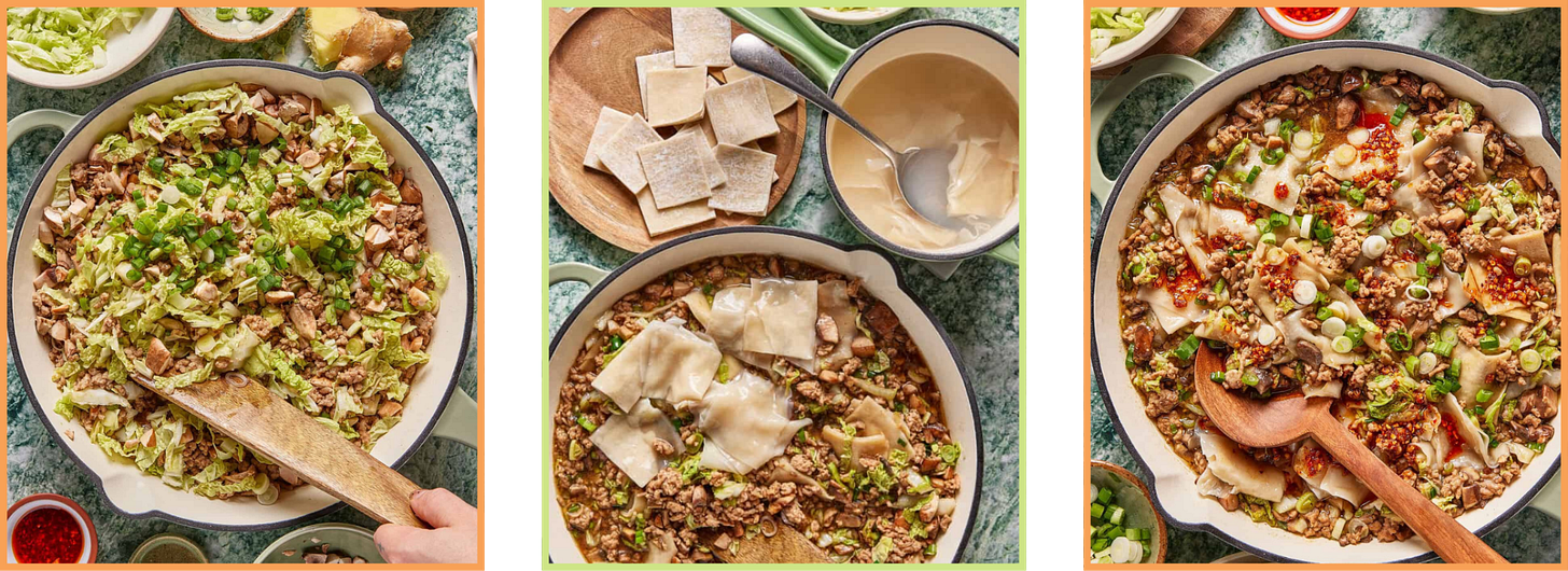 If you’re looking for a quick and cozy dinner that feels like comfort food but comes together in 20 minutes, then you’re going to love my 20 Minute Dumpling Skillet. It’s a spin on my Viral Dumpling Lasagna — made with savory ground pork, tender napa cabbage, gingery garlic, and soft wonton wrappers that stand in for noodles. Tossed in a rich, umami-packed sauce and topped with chili crunch, it’s perfect for busy nights, picky eaters, and anyone who needs a new dinner in the rotation.