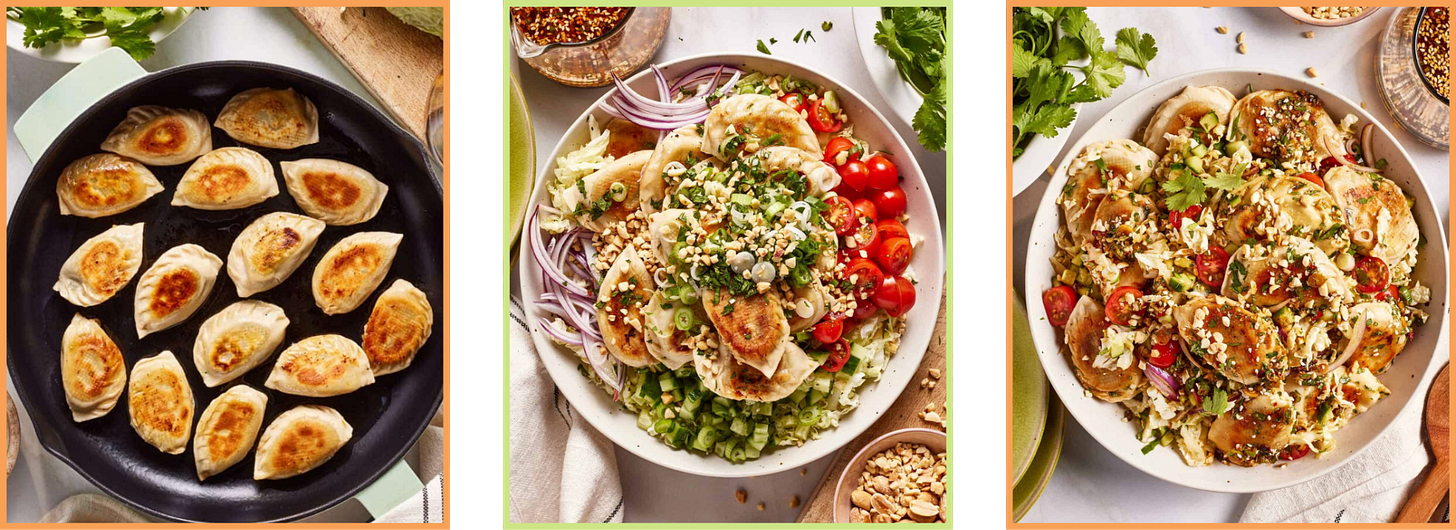 If you’re looking for the perfect way to use the bag of frozen dumplings that’s been sitting at the back of your freezer, then look no further than my Viral Crispy Dumpling Salad. This salad is filled with crisp veggies, a salty dressing, and is loaded up with your frozen dumplings of choice. Plus, it comes together in just 15 minutes, making it the perfect salad to whip up in a pinch!