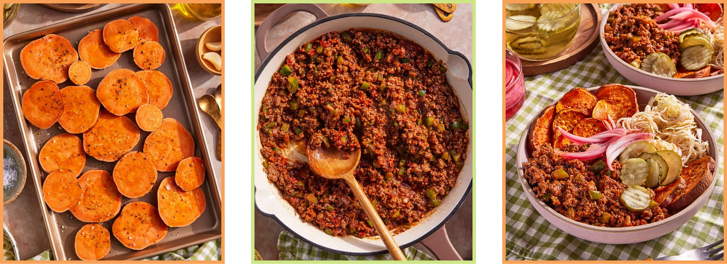 If you’re looking for a weeknight dinner that’s hearty, nostalgic, and on the table in under 25 minutes, this one is for you. My Sloppy Joe Sweet Potato Bowls have all the saucy, savory vibes of the classic childhood favorite — just a little more elevated, a little more nourishing, and served over tender roasted sweet potatoes with a quick cabbage salad and tangy pickled onions to tie it all together. Oh, and did I mention 45 grams of protein per serving? Yeah, this one’s a keeper.
