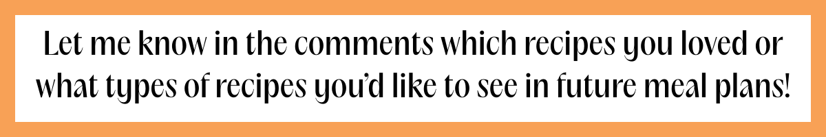 This meal plan is budget-friendly with some tips and tricks at the end too. There’s meal ideas that are easy to shop for, flexible if you want to make some substitutions, and plenty of room for doubling recipes and so on. Make it fit your needs!