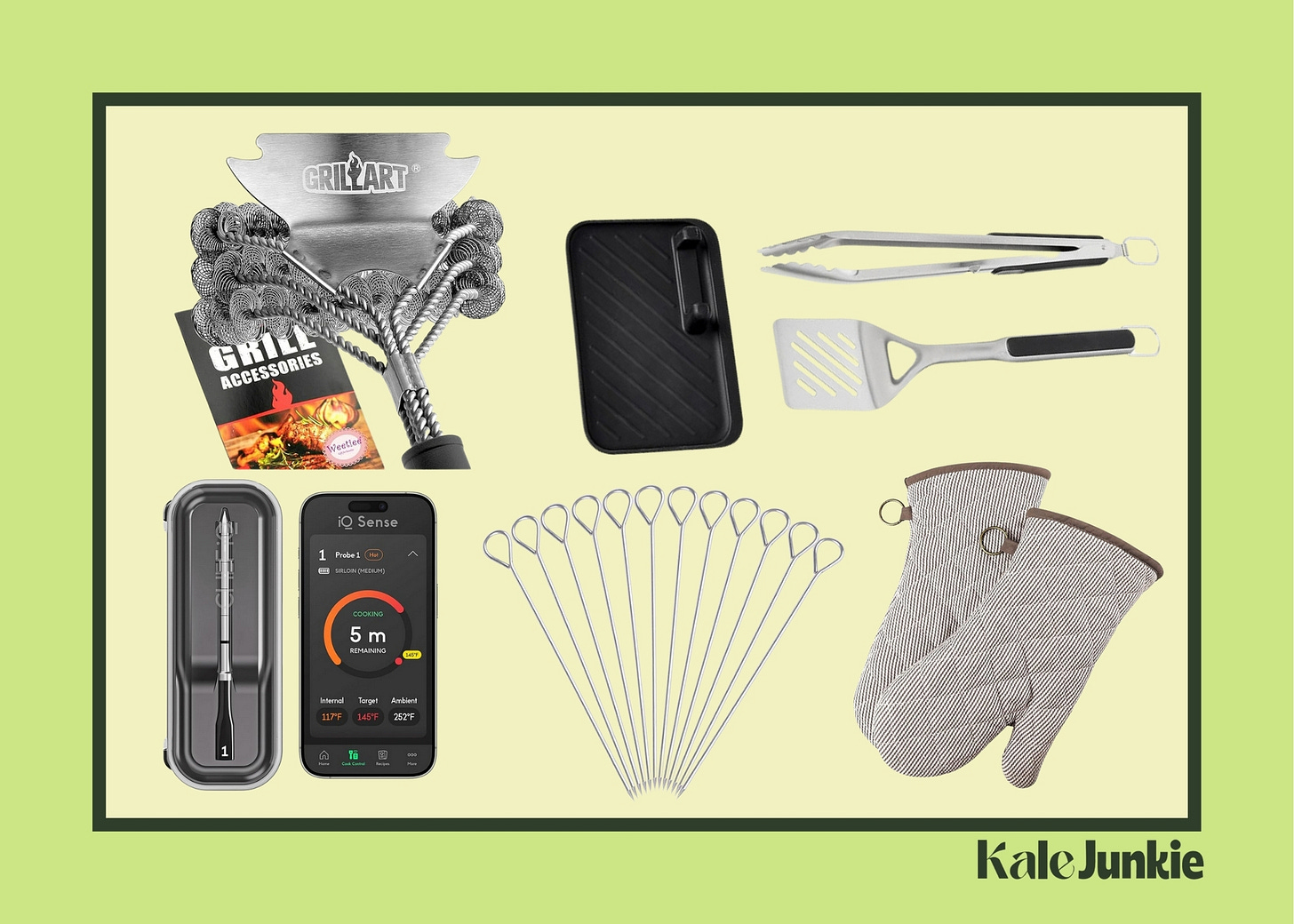 Before you even think about firing up the grill, having the right tools on hand makes all the difference. From a solid meat thermometer to the trays and tongs I swear by, here’s everything you need to make prep easy, clean-up simple, and grilling way less intimidating.