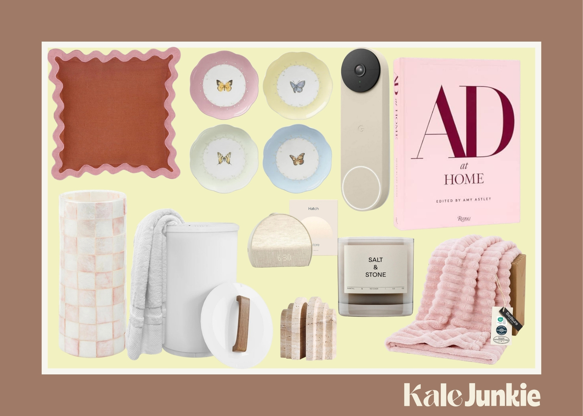 AD Book | Hatch Restore 3 | Heated Towel Warmer | Margarita Glasses | Plate Set | Skylight | Book Ends | Pillow | Vase | Google Nest | Candle | Blanket