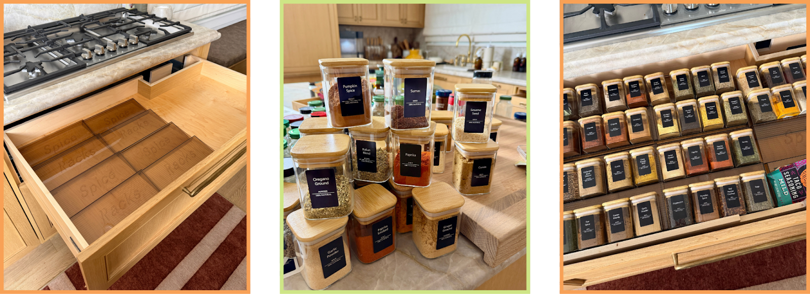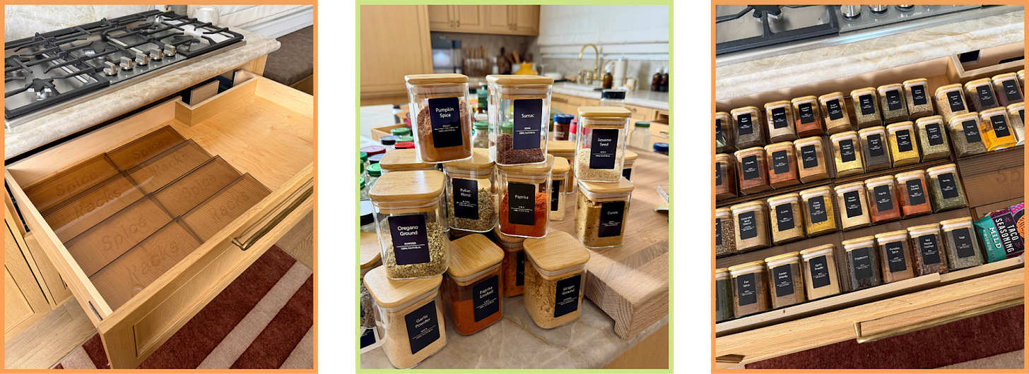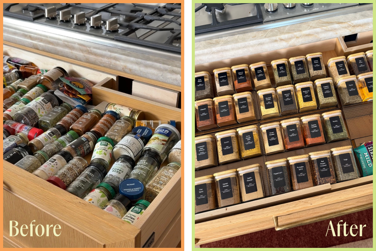 Switching to matching spice rack jars and pairing them with a spice rack organizer has been one of my favorite things I’ve done in my kitchen. I can see everything at a glance, nothing gets lost in the back, and it makes cooking intuitive.