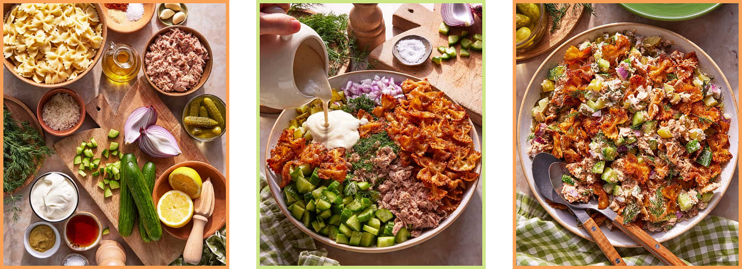 If you’re looking for a salad that’s packed with crunch, protein, and the most irresistible creamy lemon dressing, then you are going to love this Crunchy Pasta Tuna Salad with Lemon Yogurt Dressing. It has crispy, seasoned pasta chips tossed with flaky tuna, crunchy cucumbers, briny dill pickles, red onion, and fresh dill—all coated in a tangy, creamy lemon yogurt dressing that is so good, you’ll want to put it on everything. It’s a fun, unexpected twist on your classic tuna salad.