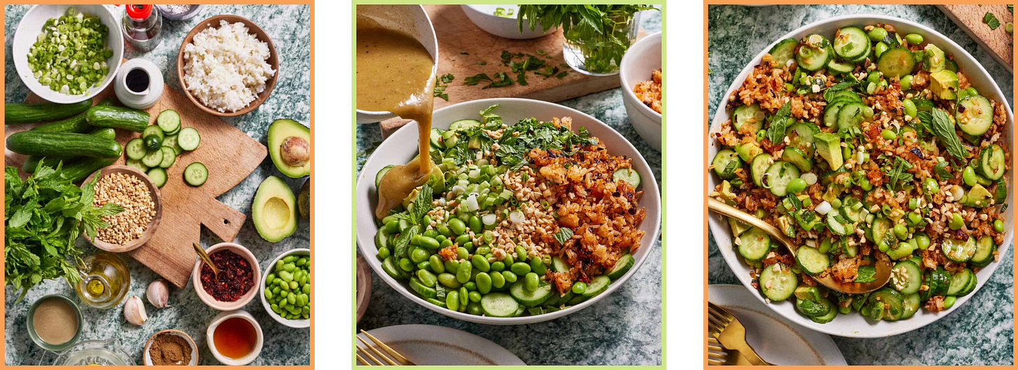 Here are some of my favorite salads in one place—several of the crispy rice salads that have collectively hit over 100 million views, the copycat restaurant salads I make at home to avoid a $25 price tag, and a few others that have been on rotation for years.