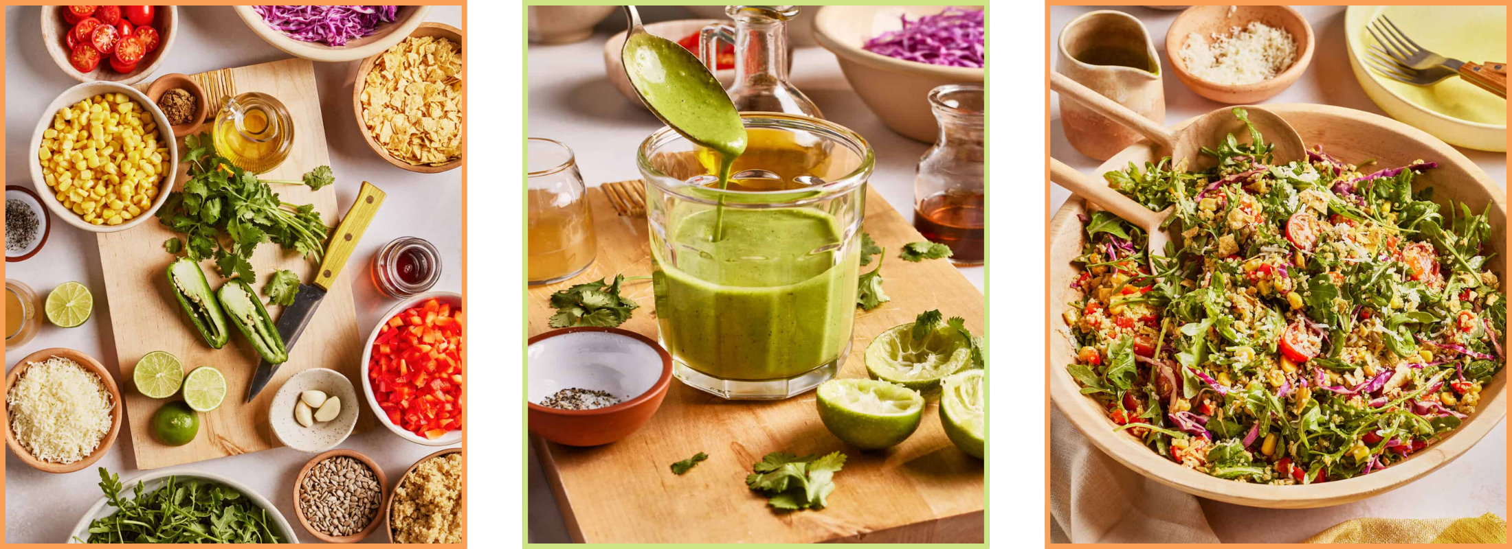 Use bold dressings. A good dressing can completely change how a salad tastes and how excited you are to eat it. I’m not saying you need to drown your salad in dressing. But what you use is very important. It needs real flavor — tangy, creamy, savory, or slightly sweet. If your salad feels boring, it’s usually not because of the veggies — it’s because the dressing is bland.