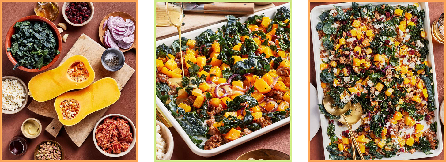 If a warm and cozy salad is calling your name, then look no further than my Sheet Pan Warm Kale Salad. This vibrant salad is packed full of tender toasted veggies, mild Italian sausage, tangy feta cheese, and crunchy pistachios, all topped off with a creamy maple dijon dressing for the perfect salad in every bite. The sheet pan makes it quick and easy to assemble, plus, it makes it easy for serving a crowd. Whether you make this for your next gathering or for a simple family dinner, you can’t go wrong with this salad!