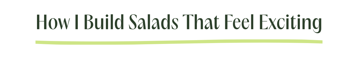 There’s nothing wrong with salads. They simply need a little intention. If you’re staring at a fridge or pantry with random ingredients and want to give building an exciting salad a go, here are my general rules of thumb:
