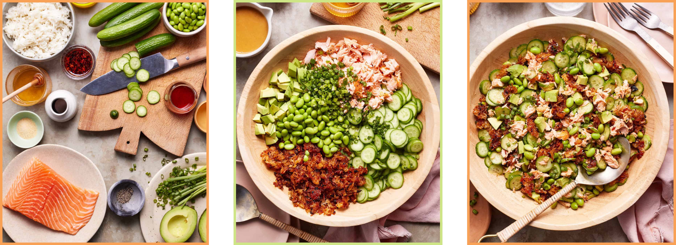 If you love a salad that is packed with flavor, texture, and all of the fixings, then you’re going to fall in-love with my Crispy Rice Salmon Cucumber Salad with Creamy Asian Dressing. This twist on the viral cucumber salad pairs the crunch cucumbers with tender, flaky salmon, avocado, edamame, and perfectly crispy rice that is absolutely crave-worthy. Top it off with the easy creamy Asian dressing, and you’ve got a perfect crunchy salad that’s perfect for meal prep!