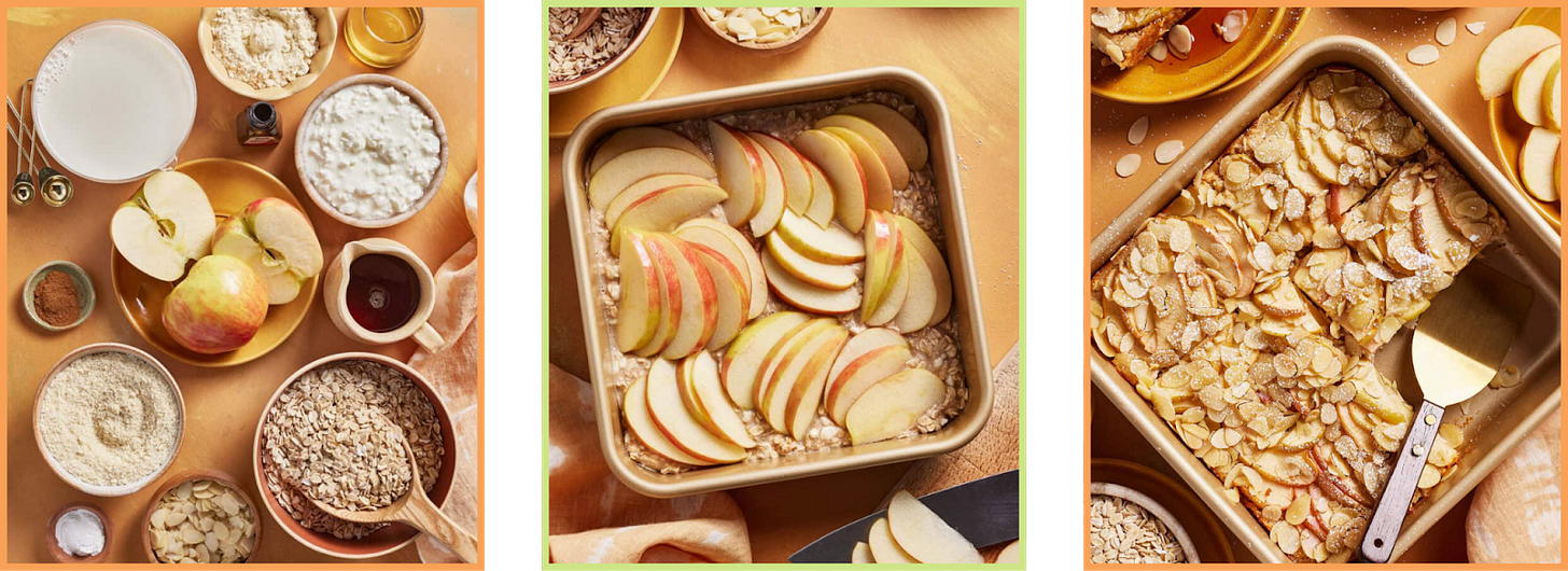 Breakfast is apple and almond croissant baked oats, which I’ve been making on repeat because they taste like dessert but keep everyone full until lunch. And the lemon bites in the snack slot always disappear from the fridge faster than I can keep up with.