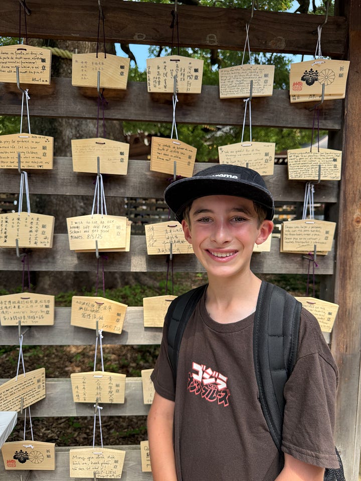 Meiji Shrine – A massive, serene Shinto shrine nestled in the forest. We each made wishes and hung them on the wooden prayer wall.