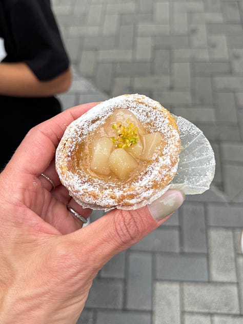 Chacha Futusame - I had seen this matcha mont blanc ice cream thing on TikTok and made it my mission to go. It was incredible. The mont blanc was definitely sweet, but once you got to the tangy ice cream inside the cone, it was the perfect sweetness.